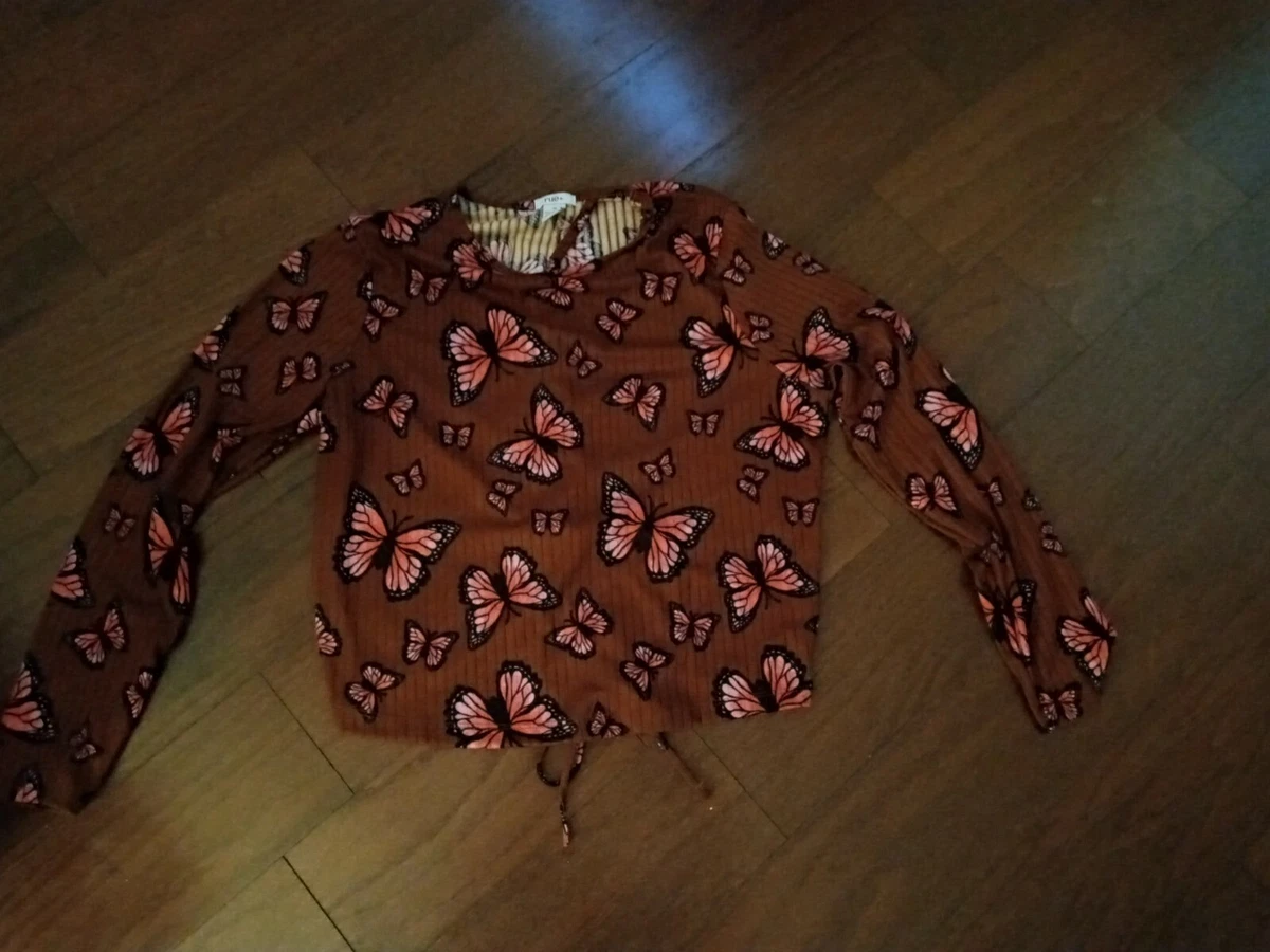 Rue 21 1xl Brown Long Sleeve Butterfly Top With Lace Up Back Ebay